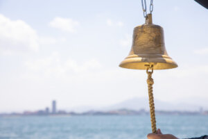 鐘を鳴らし、ゆっくりと海域を旋回しながらスタッフ一同で静かに祈りを捧げます。